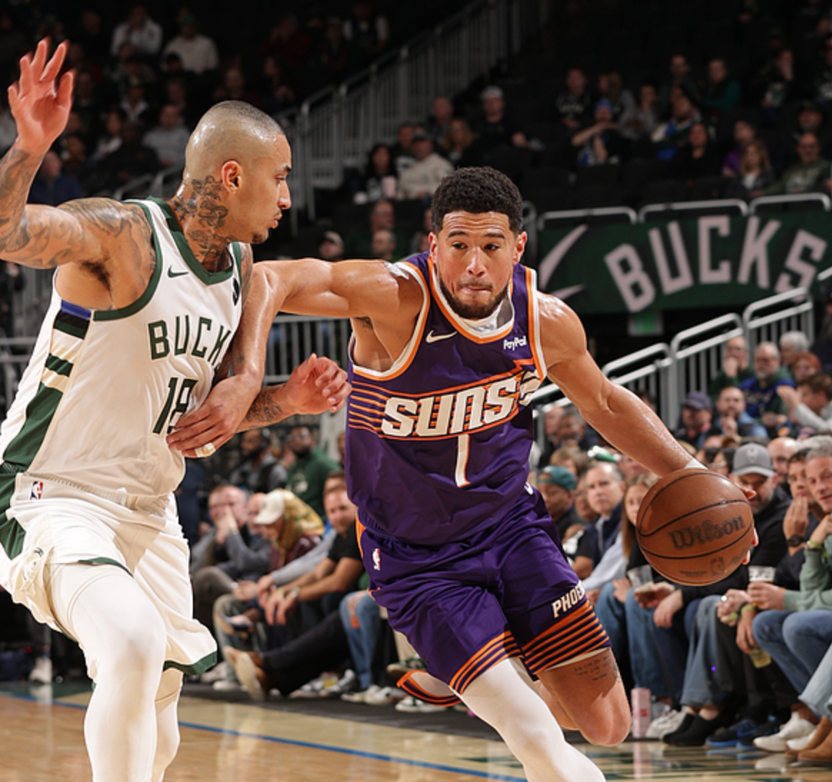 太阳客场挑战雄鹿,太阳少了狄龙、马威,雄鹿少了波特、波蒂斯,首节比赛太阳取得6分领先,第二节雄鹿单节赢了9分,半场战罢雄鹿领先3分,下半场比赛太阳优势明显,最终太阳129-114赢下比赛。布克21中10(三分7中4)得到27分5板7助,杰伦格林20中10(三分10中3)得到25分4板5助,奥尼尔11中7(全是三分)得到21分5板4助2断,雄鹿方面字母哥18中11得到22分6板3助,库兹马21中12(三分10中6)得到33分3板3助2断,特纳13中7(三分8中5)得到22分9板。
